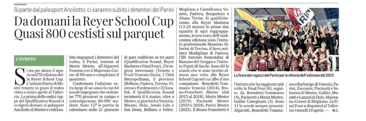 Next Next post: Le scuole vanno a canestro Parte la sfida tra studenti – Il Gazzettino di Venezia
