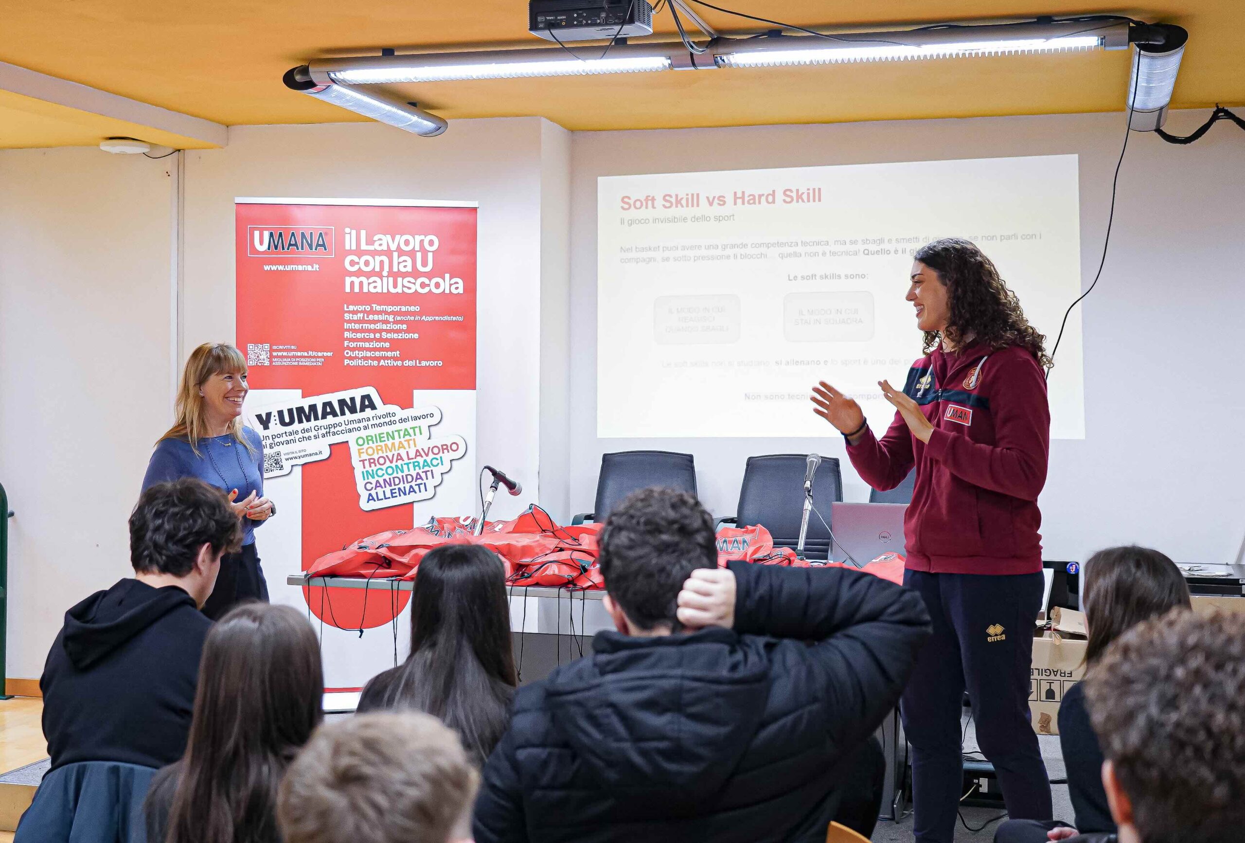 Non solo basket giocato, ma anche formazione e sguardo al futuro. Nella cornice della tappa odierna, Umana ha arricchito la mattinata con un’importante attività dedicata agli studenti: un percorso di quattro incontri (dalle 9:00 alle 13:00) per esplorare il prezioso legame tra sport, competenze trasversali e mondo del lavoro. L’iniziativa si è articolata in due momenti chiave: il workshop in plenaria “Soft Skill & Sport. Vinci fuori dal campo”, volto a sensibilizzare i ragazzi su come il parquet possa essere un vero laboratorio di crescita professionale, e l’innovativa esperienza “Unlock your bio with Umana”. Grazie a tre totem interattivi e al supporto dell’Intelligenza Artificiale, gli studenti – affiancati dai selezionatori Umana – hanno potuto esplorare i propri punti di forza e creare una biografia personalizzata che valorizzi il loro potenziale. Testimonial d’eccezione è stata Lorela Cubaj: il centro dell’Umana Reyer e della Nazionale ha partecipato attivamente, sottoponendosi al test “Unlock your bio” e interagendo con gli studenti, condividendo la propria esperienza di atleta e professionista.