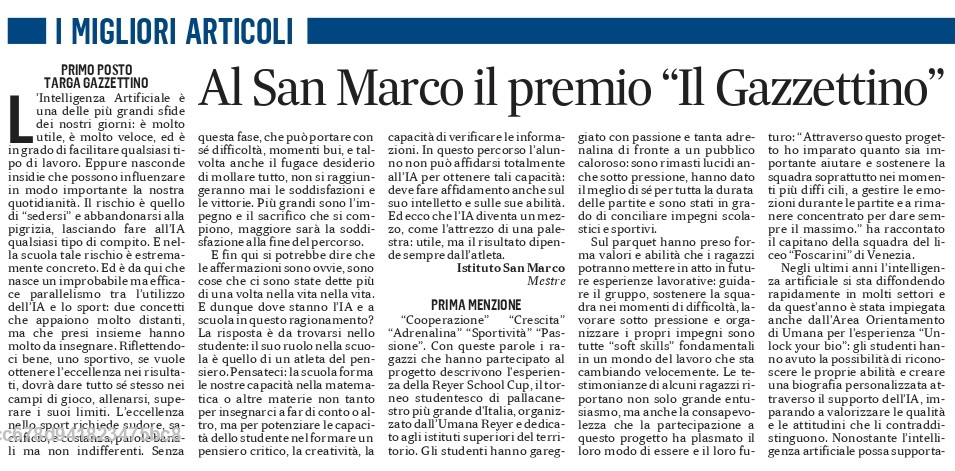 Miglior articolo Gazzettino: Istituto Salesiano San Marco di Mestre