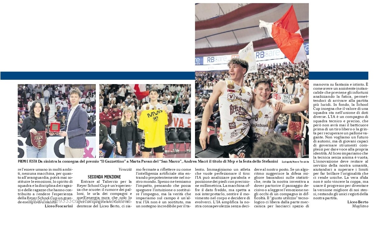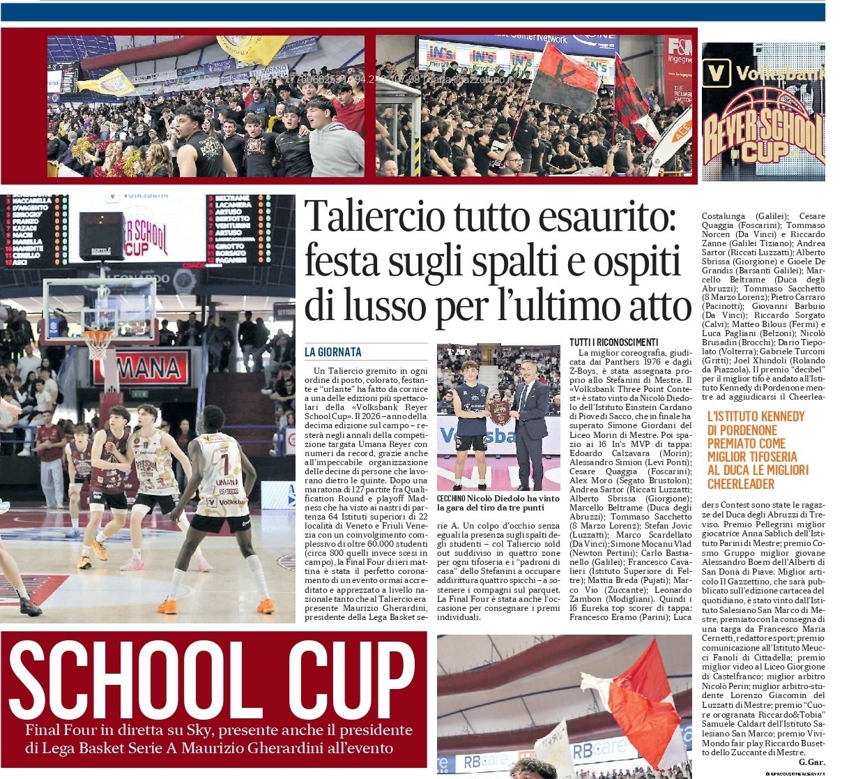La Final Four rappresenta il punto di arrivo perfetto di un percorso che unisce sport, scuola e territorio, consolidando la Volksbank Reyer School Cup come uno dei progetti più significativi e imponenti nel panorama sportivo e formativo italiano.