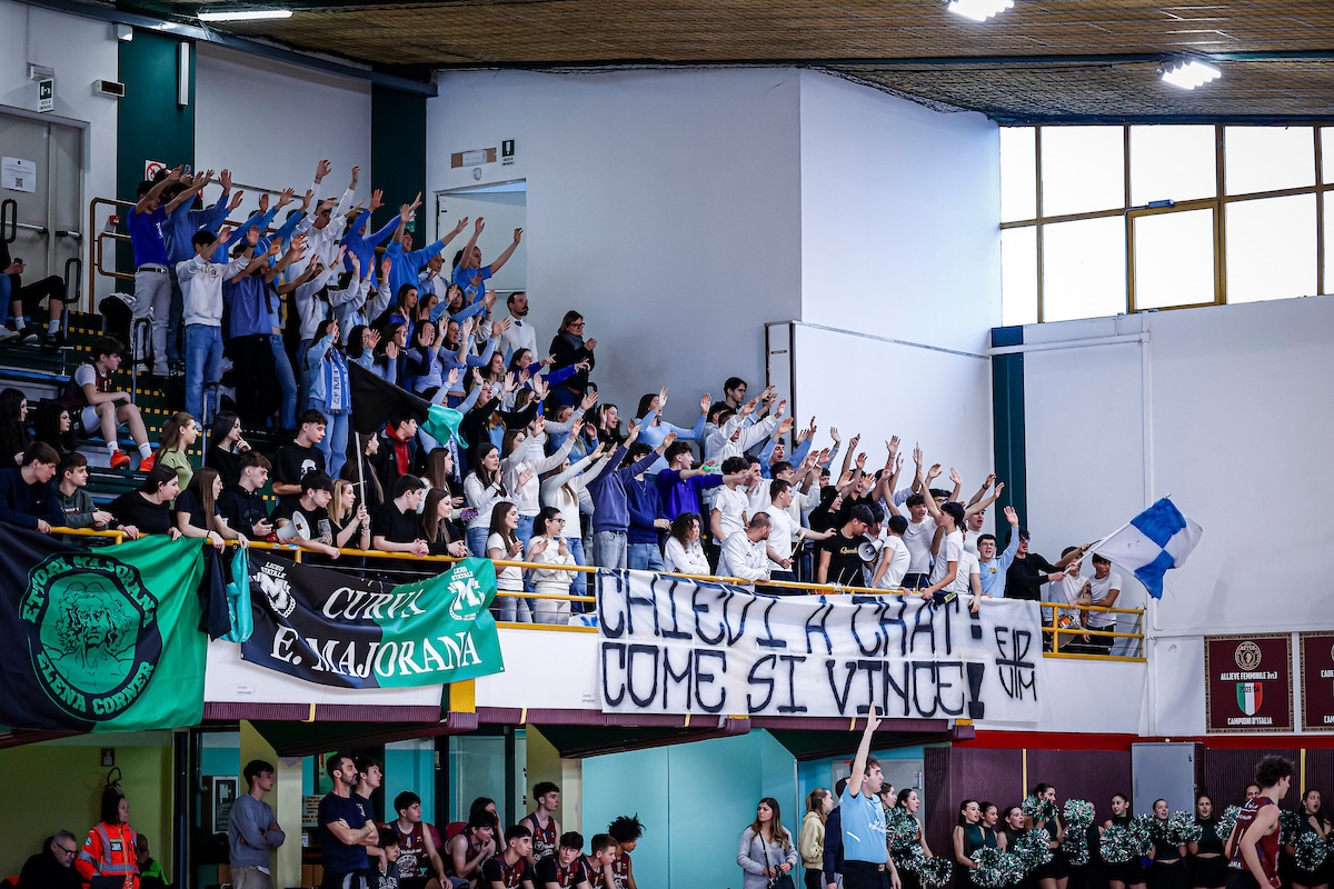 Il Majorana-Corner di Mirano piega con autorità l’Algarotti di Venezia con il punteggio di 40-32. Già all’intervallo la gara è indirizzata verso i ragazzi di Mirano, che segnano 22 punti e ne lasciano solo 8 al team veneziano. Nella ripresa l’andamento del match cambia almeno nei primi 5’ di gara, con la squadra di Venezia che rientra fino al -5; poi il Majorana riprende il controllo delle operazioni e chiude senza troppi problemi. Due giocatori in doppia cifra per l’istituto di Mirano: Andrea D’Emilio mette a referto 14 punti, seguito dai 10 di Leonardo Burbello. Dalla parte opposta non sono sufficienti i 14 di Giacomo Camuffo. È il Majorana che parte con le marce alte, 0-7 al 2’ con D’Emilio e Berto a dettare i ritmi, immediato time-out dell’Algarotti. Camuffo infila la bomba del -4 che ridà energia al team di Venezia. Gara dal punteggio basso, 7-9 al 5’ con i due punti del lungo Ogbeide. L’istituto di Mirano con una serie di transizioni allunga sul 7-17 al 7’. Alla prima sirena il quintetto del Majorana è in ampio controllo conducendo 8-22 con 10 punti di Andrea D’Emilio. Appena dopo l’intervallo, la buona circolazione di palla del Majorana produce il massimo vantaggio, 25-10 al 12’; dalla parte opposta l’Algarotti mette in campo tanta grinta lottando su ogni pallone, 25-17 al 14’ con la tripla frontale di Giacomo Camuffo: un parziale di 7-0 che riapre in qualche modo la partita. Il break dei veneziani si spinge fino al 9-0, 19-25 al 15’. Mirano rompe il digiuno grazie a Burbello e Boscolo, 19-29 al 16’ e time-out Algarotti. Con l’ingresso di D’Emilio il Majo riprende il largo, 21-35 al 18’. Negli ultimi 120 secondi del match l’Algarotti mette tanta energia in campo e ricuce fino al 30-35 con 35” sul cronometro. I liberi siglati da D’Emilio mandano i titoli di coda del match. Finisce 32-40 in favore del Majorana-Corner di Mirano.